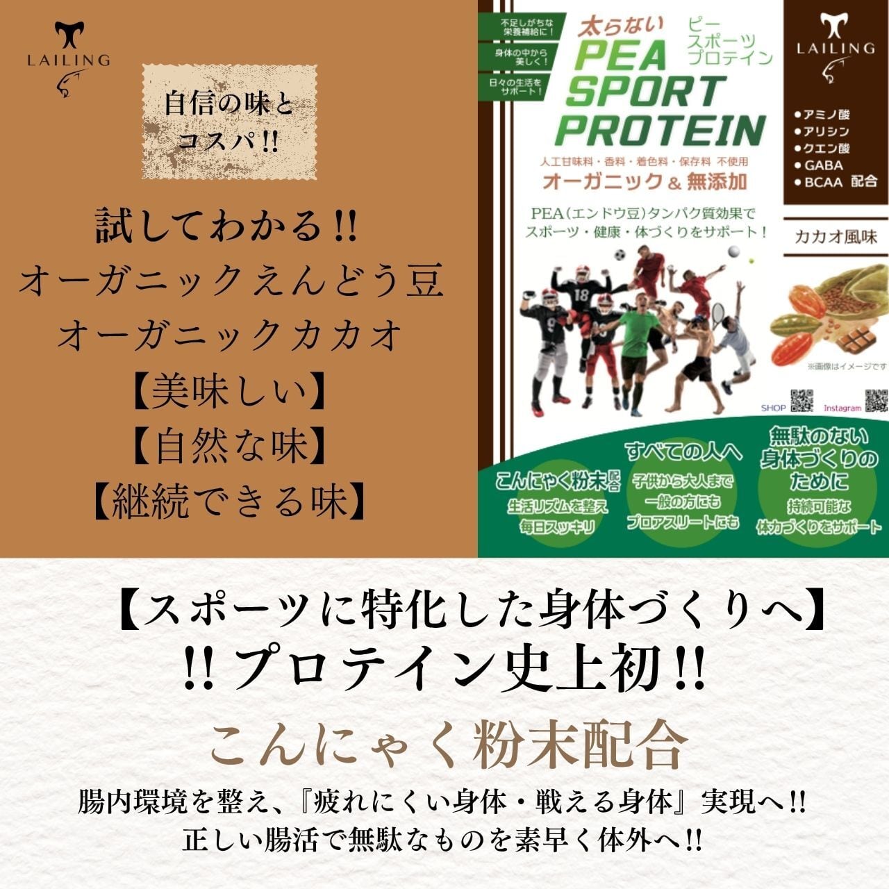 最高品質を追求した、PEAスポーツプロテインがあなたの健康づくりをサポートします!オーガニックえんどう豆を使用し、無添加にこだわったこのプロテインは、25gあたりのタンパク質量17.5gを誇り、アミノ酸スコア100を達成。健やかなライフスタイルを目指すすべての方におすすめです。