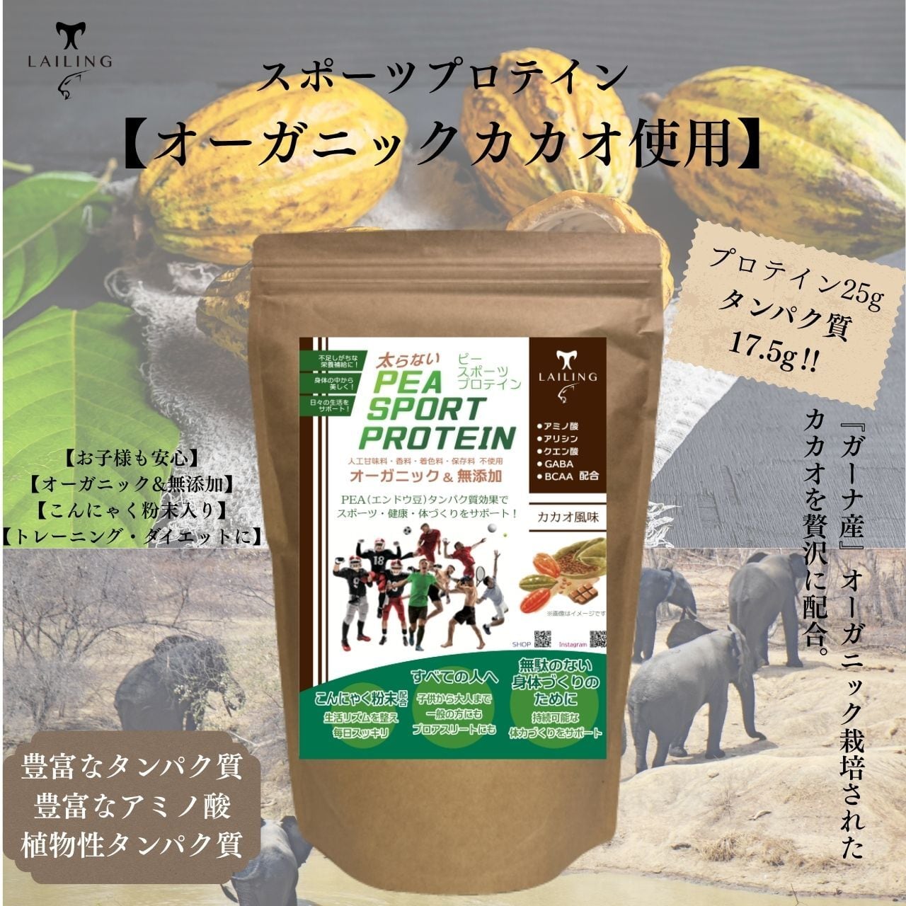 【1kg】ピースポーツプロテインこんにゃく粉末入りオーガニック&無添加 カカオ味 25gあたりのタンパク質量17.5g